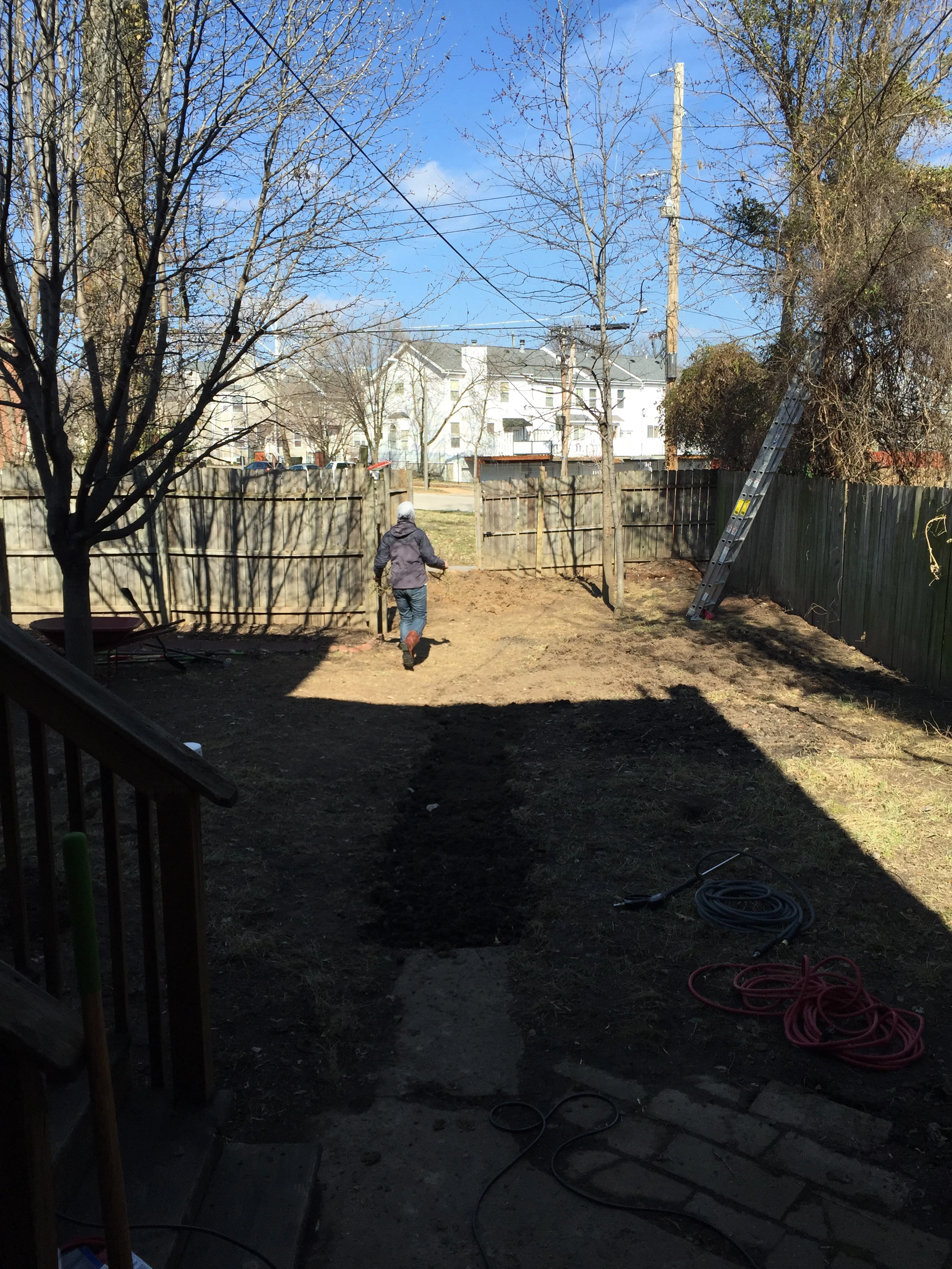 Next day, the topsoil came and it was another day spreading that and fixing broken fence sections and staining the now lovely clean fence boards. Finally it was time to seed, fertilise, water and pray :)