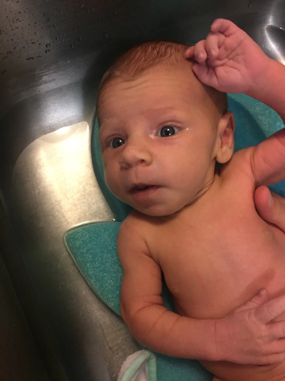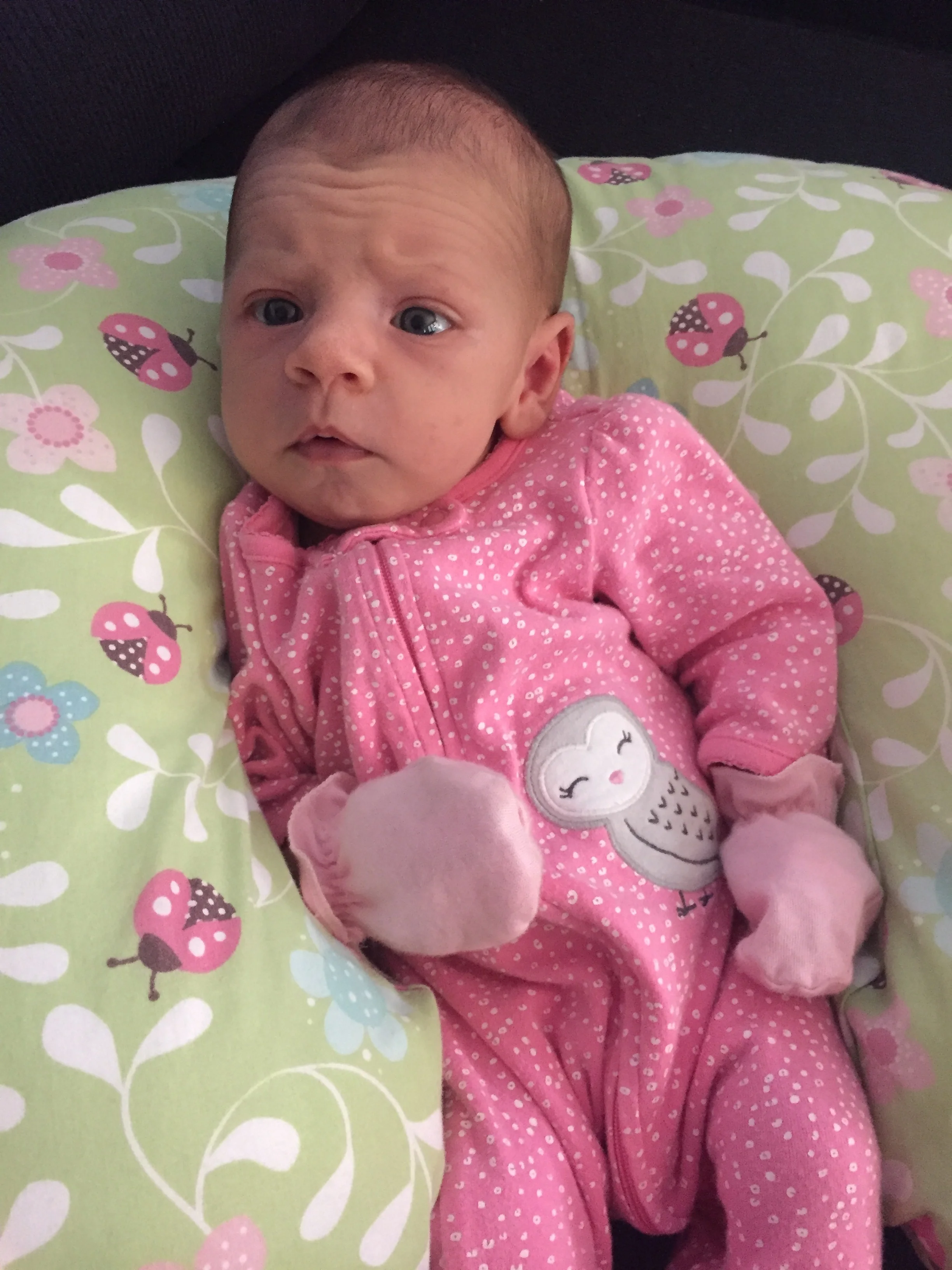 Her personality at the moment seems to be either very hungry (if that counts as a personality trait), serious and thoughtful, very sleepy, or super angry - especially when being changed. Jonathan often says she has 2 speeds - content or livid and not much in between.