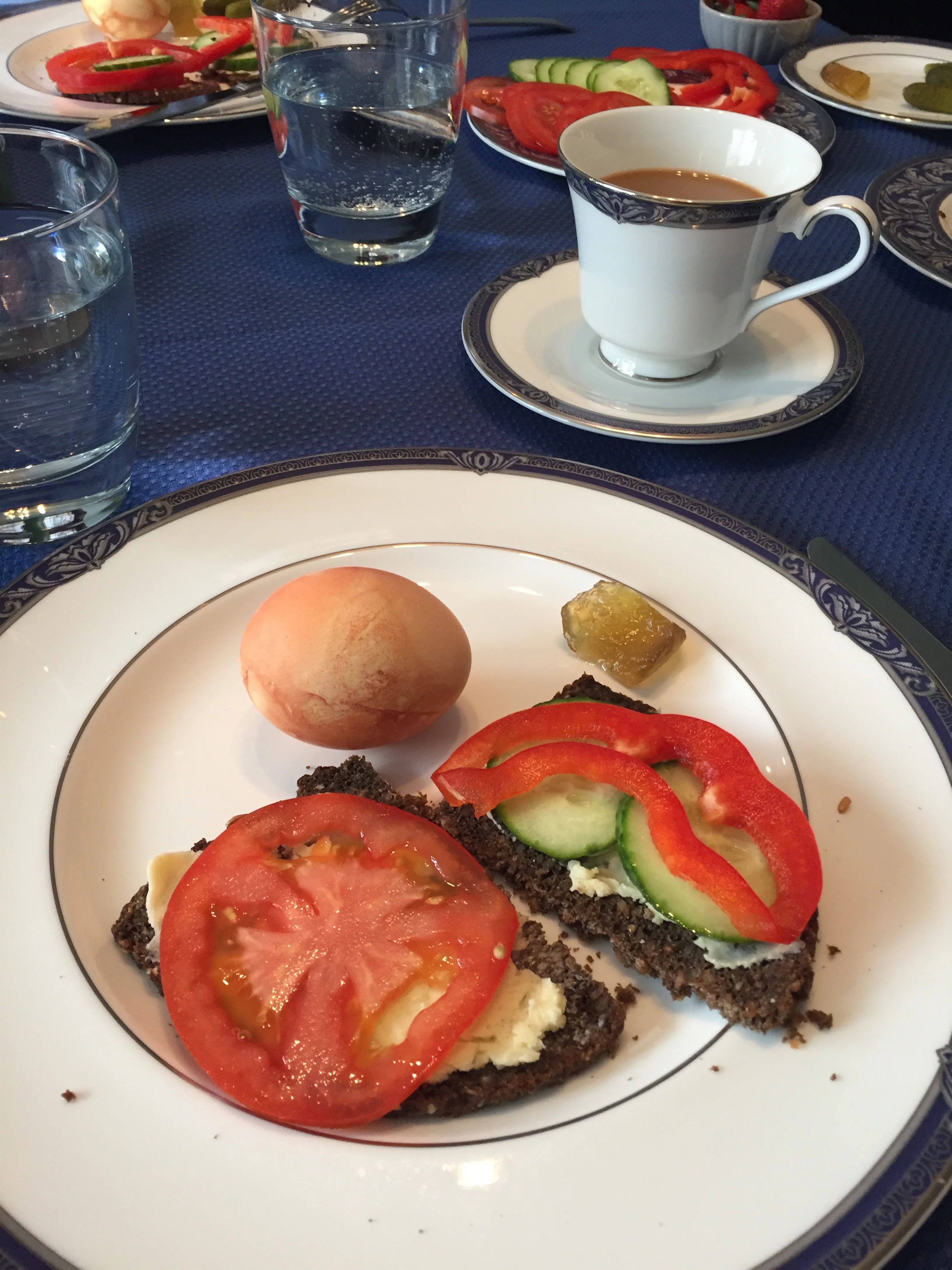 We started our day pretty early with a Latvian Easter brunch consisting of hard boiled eggs that had been dyed with onion skins, pickled gherkins and watermelon, brown bread w sliced veggies and tinned herring. We had to do Jonathan's Latvian heritage proud!