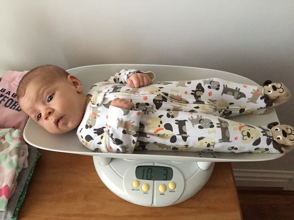 10 pounds! (The sleeper and diaper were 3 ounces).